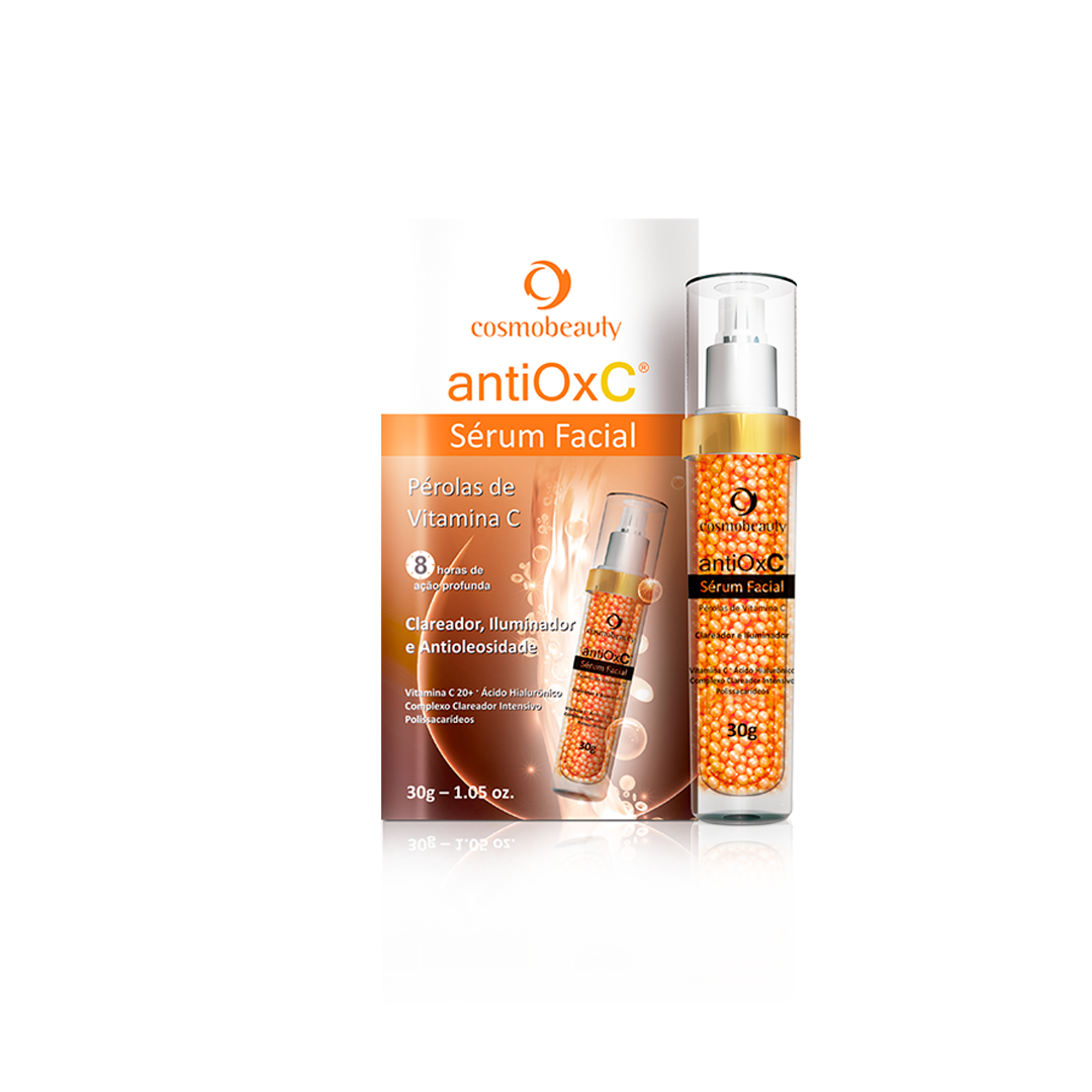 Antiox C Pérolas Pérolas concentradas com 20% de vitamina C. Proporciona eficácia na redução dos sinais do envelhecimento e melhora na uniformidade do tom da pele. Sua textura gel, completamente livre de óleos, é ideal para todos os tipos de pele, inclusive as oleosas e com tendência ao surgimento de acne. Ativos: Vitamina C 20%, Ácido Hialurônico, Complexo Clareador e Polissacarídeos. Modo de usar: Aplicar na face limpa e massagear completamente. Usar duas vezes ao dia.