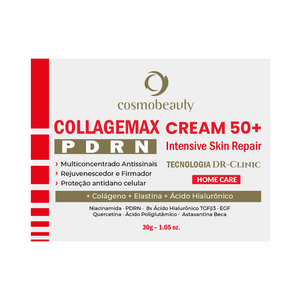 Collagemax PDRN Cream 50+ Antienvelhecimento e Firmador para pele madura. Multiconcentrado facial que reduz os sinais visíveis do envelhecimento com ação firmadora. Protege as células contra o envelhecimento precoce, hidrata intensivamente e restaura a pele firme, revitaliza e com contorno facial restaurado. Sua textura cremosa, hidrata em profundidade e não deixa sensorial pegajoso. Ativos: Niacinamida · PDRN · 8x Ácido Hialurônico · TGF?3 · EGF · Ácido Poliglutâmico · Quercetina · Astaxantina · Beca Modo de usar: Aplicar sobre a pele limpa e massagear até completa absorção. Usar duas vezes ao dia.